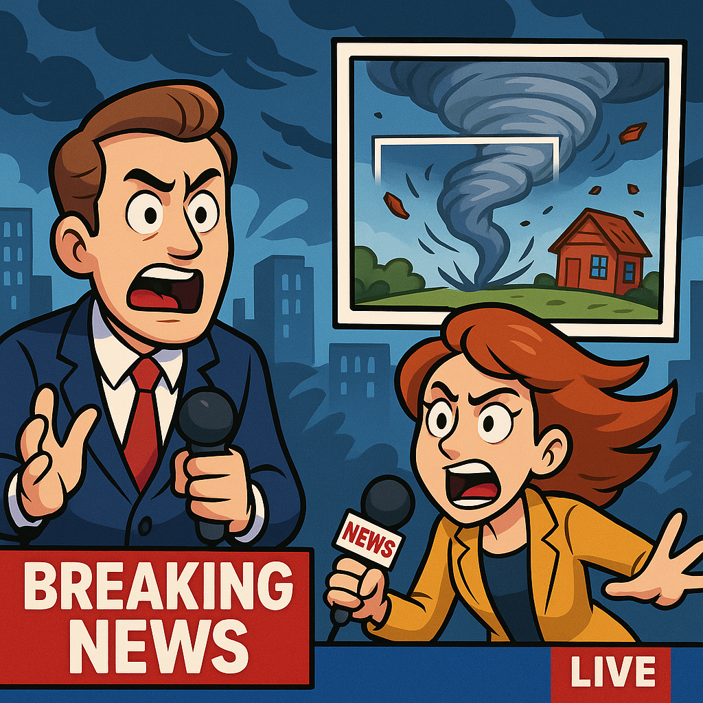 Cartoon Breaking News Scene Description